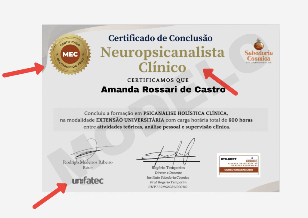 Caso você não adicione o certificado universitário, você receberá o certificado de Formação Livre pelo Instituto Sabedoria Cósmica, que também permite atuar normalmente dentro da legislação vigente.